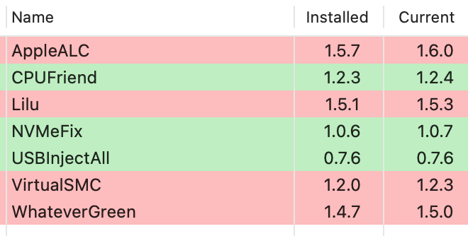 Also bei mir waren alle Kexte auf dem neuesten Stand (mache ich immer zusammen mit den OC updates am 1. des Monats bzw. wenn es halt released wird).