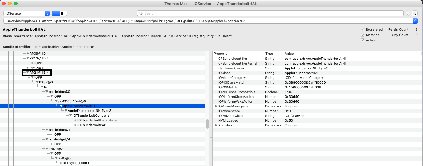 in ioRegistryExplorer, unter AppleThunderboltHAL