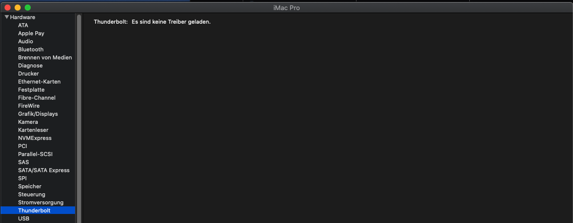 Leider wird die Karte nicht korrekt erkannt, da sie weder im dem PCI noch dem Thunderbolt Reiter angezeigt wird.