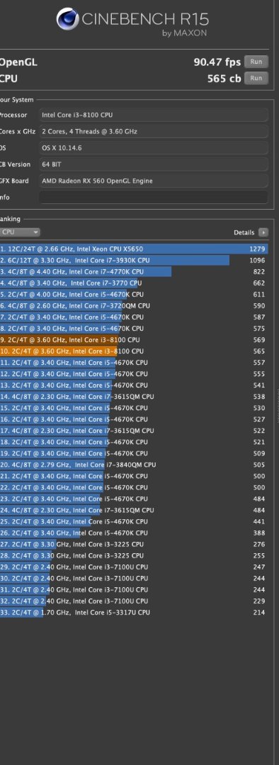 wieso bekomme ich bei Cinebench nur 2 cores/4 Threads angezeigt?