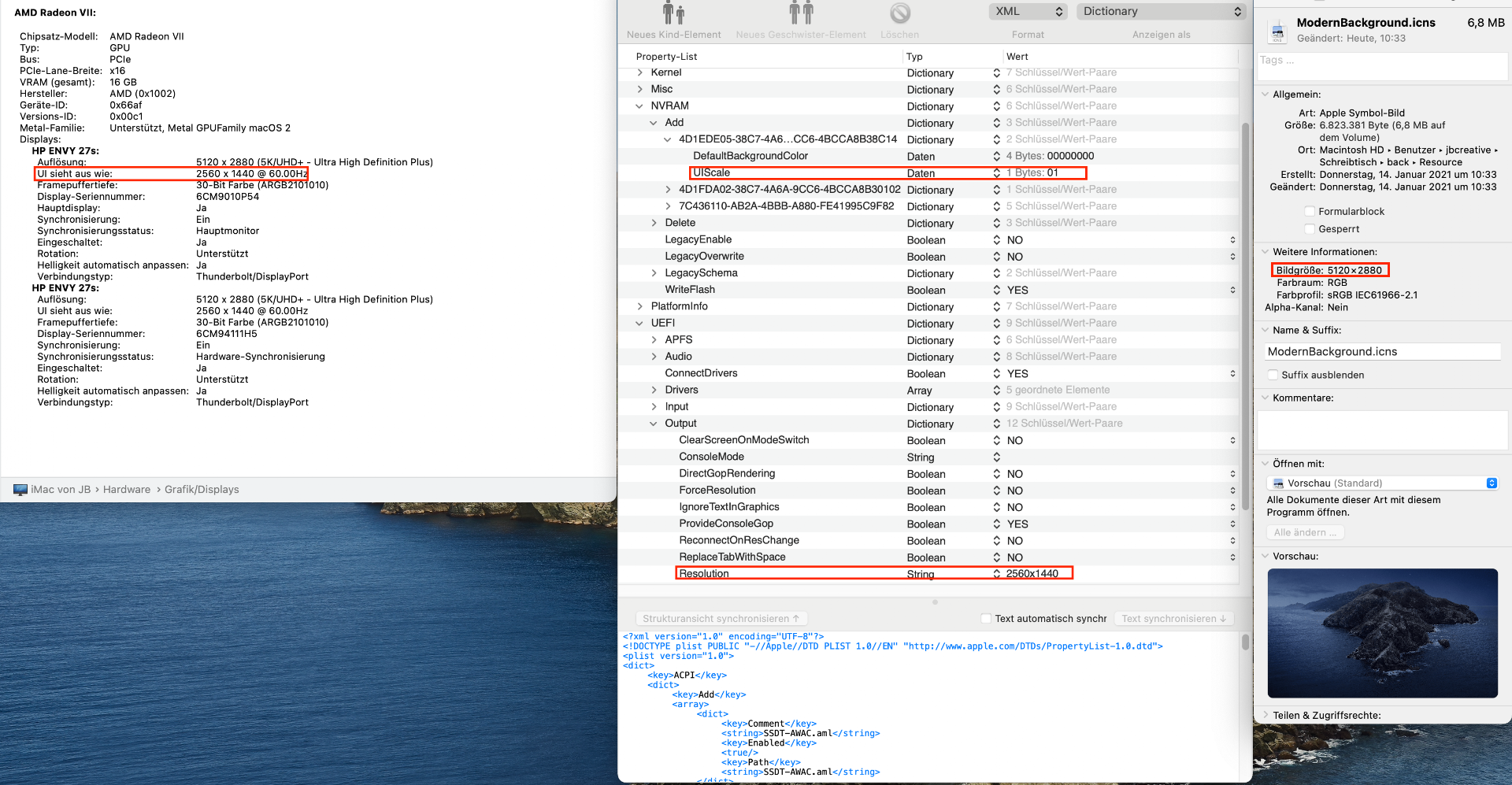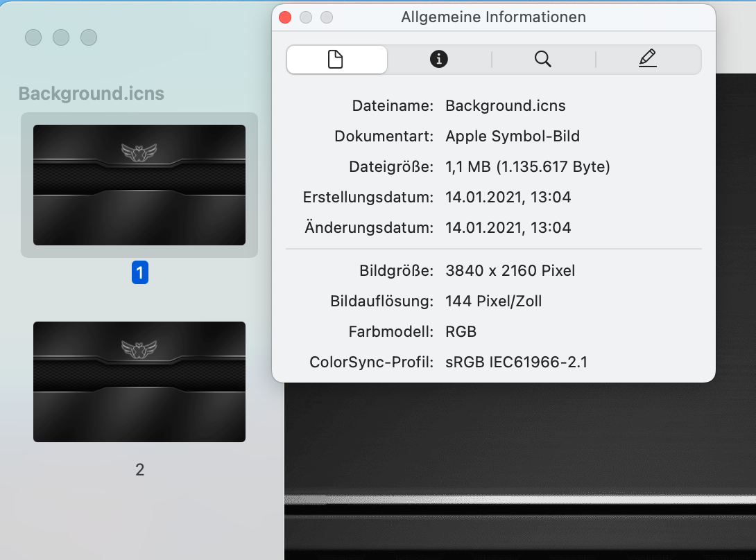 dei größere Auflösung der ModernBackground.icns endet quasi bei 6720x3780 und da bleibt noch ein Rand schgwarz außen herum. Das Bild noch weiter zu vergrößern, z.B.. 6858 × 3858 brachte keine Änderung mehr, der schwarze Rand bleibt unverändert. Muss ich die Auflösung evtl. genau berechnen?