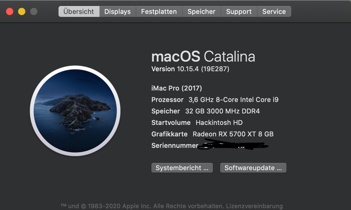 Im Clover-Menü fehlt dann aber die Install-Partition und ich kann nur wieder ins OS reinstarten. Das klappt dann problemlos, aber mir wird nach wie vor das Update angeboten.