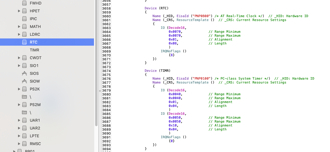 Hier wird nach IRQFlag (0) in der DSDT gesucht und auf () gestellt, bzw. nach (8) gesucht und auf () gestellt. Die Patches sollten auch bei Dir arbeiten, so hoffe ich.