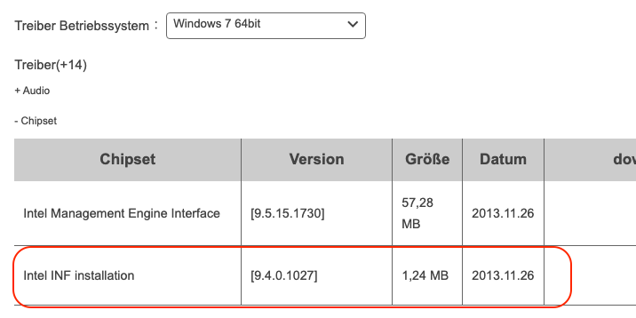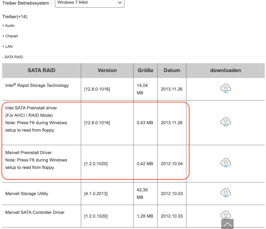 Basierend auf diesem Thread habe ich zusätzlich alle angebotenen Treiber für das Mainboard integriert.