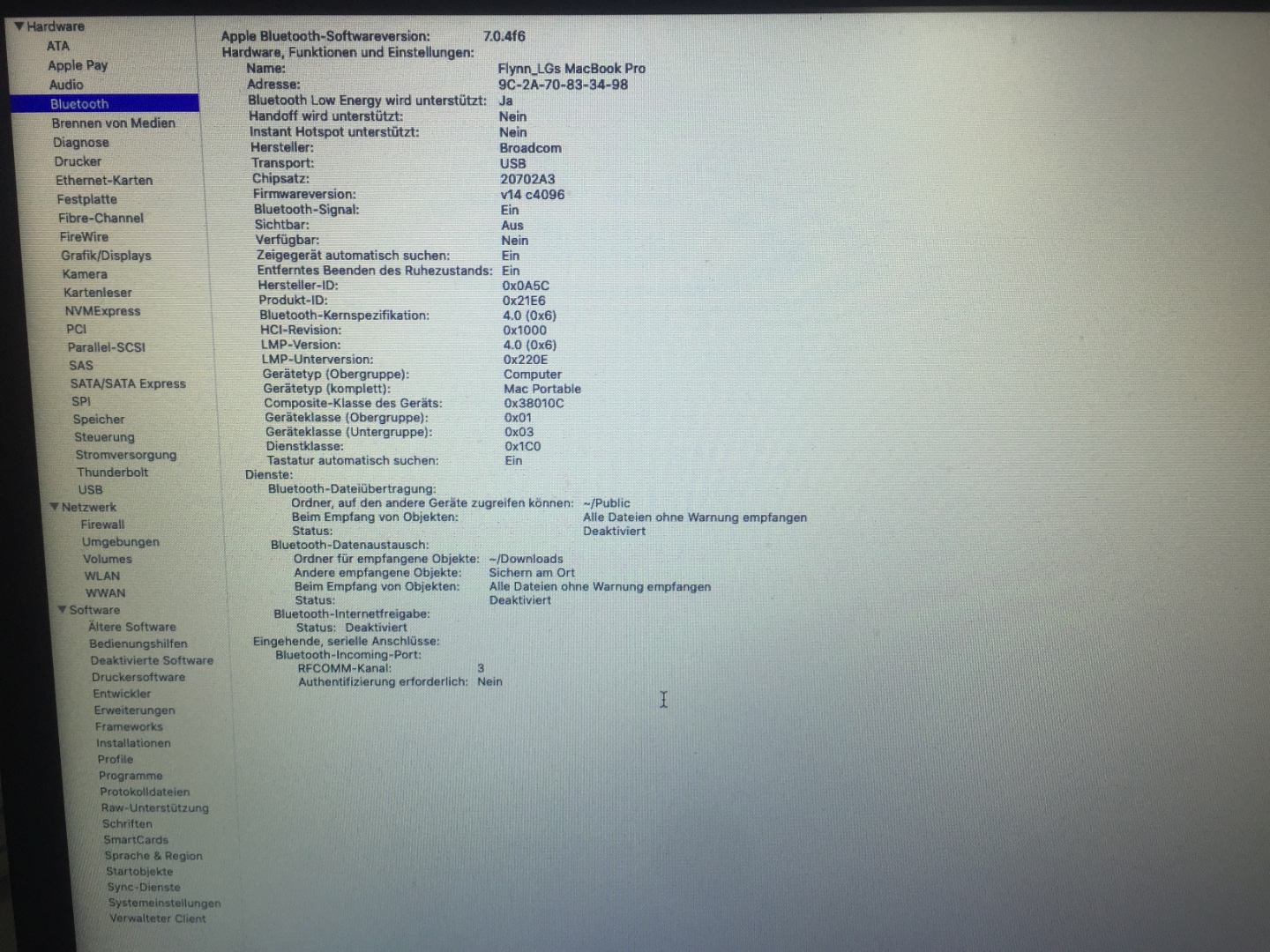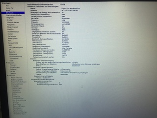 Es steht ja auch jetzt bei MacOS Bluetooth aktiviert, aber er findet garnichts. Was mit dem WLAN los ist - keine Ahnung.