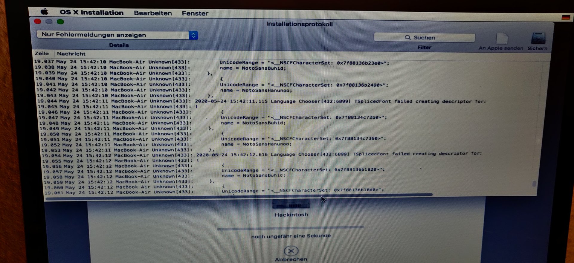 Ich bin jetzt bei der Installation die auch fast durchgelaufen ist. Jetzt zeigt er mir aber seit einer halben Ewigkeit "noch ungefähr eine Sekunde an". Fehler Meldung siehe Bild.