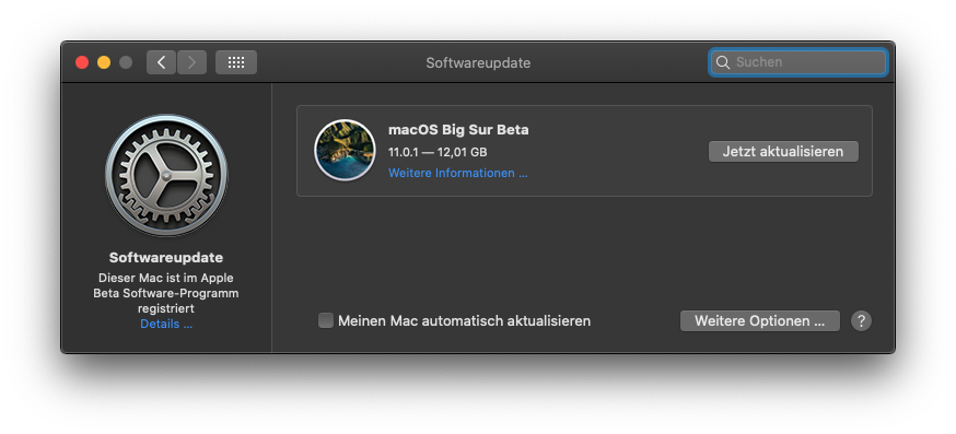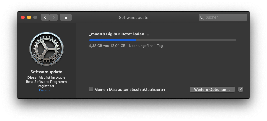 • bei mir lief das Update auf Big Sur Beta 11.0.1 nach dem selben Schema ab, wie bei den vorherigen Betas, nicht genau gezählt, aber 4 Neustarts waren das.