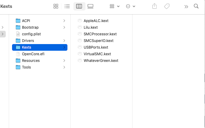 Kernel: Lilu, VirtualSMC samt Begleitung, AppleALC, IntelMausi, USBPorts
