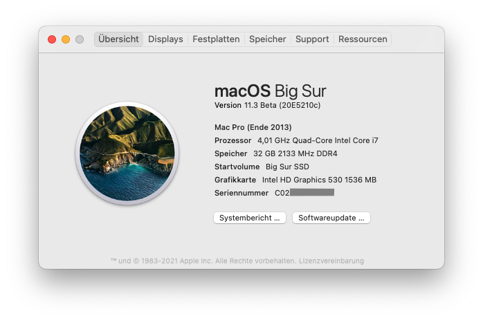 Glaube doch gerade denn mein Betriebssystem is Big Sur 11.3 beta 4 mit OC 0,6.7