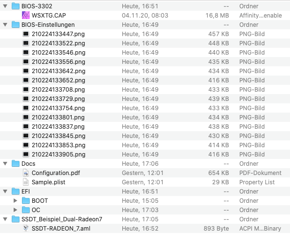 Ziel diese Tutorials ist es, einen lauffähigen EFI-Ordner zu erhalten, in dem sämtliche auf dem Board vorhandenen Geräte optimal eingebunden werden. Wir entscheiden uns für eine Mischung aus SSDT und OpenCore Properties Injection, so ist es einfacher für eigene spezifische Anpassungen einen geeigneten Weg zu finden.