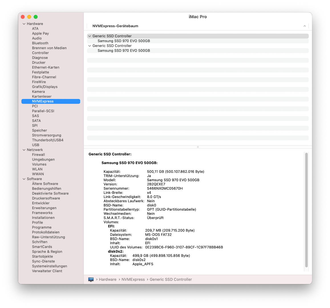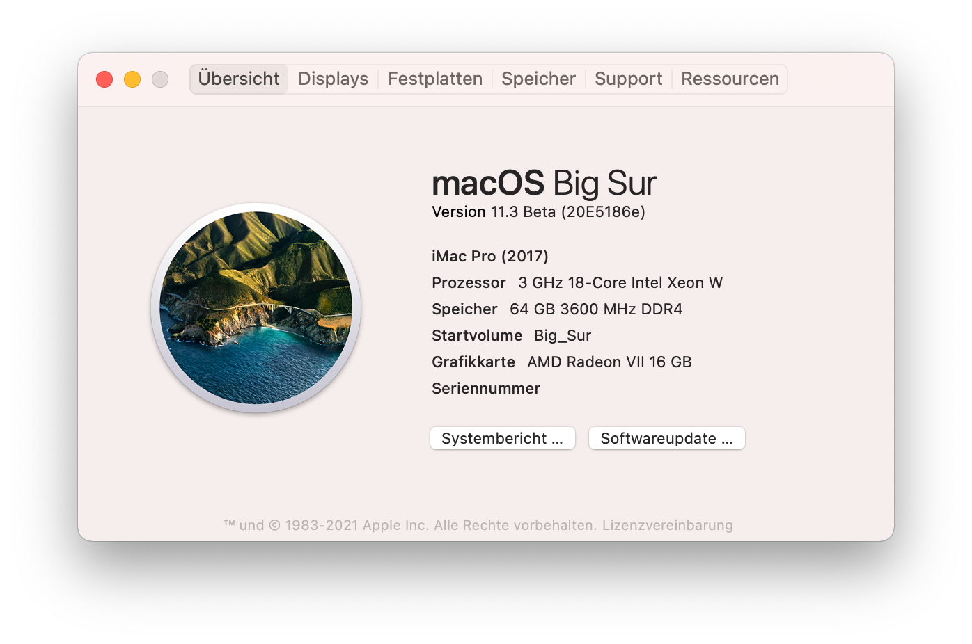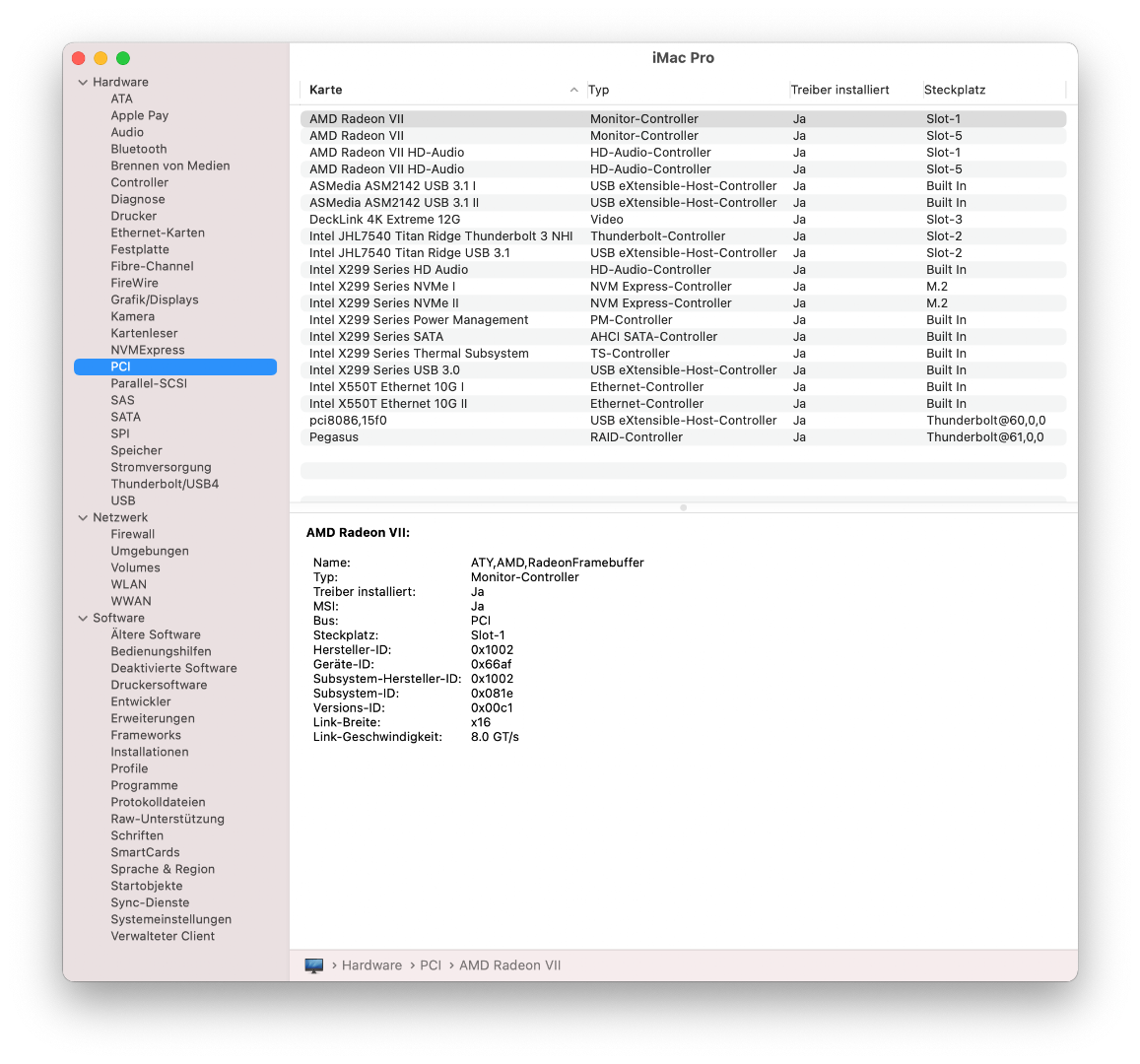 Generell kann für dieses System ein "iMac1.1"-SMBIOS empfohlen werden, auch wenn der Rechner sich doch eher anfühlt wie ein "MacPro". Dieser "Befindlichkeit" sollte man aber nicht nachgeben, denn CPU, Chipsatz und Speicheranbindung ähneln dem iMacPro deutlich – auch wenn wir freie PCIe-Slots haben und keinen "All in One Computer". Schaut man sich die ACPI des iMacPro an, so wird die Ähnlichkeit zum X299 noch deutlicher – denn der iMacPro basiert auf dem recht ähnlichen Chipsatz C422 mit einer XEON-W CPU. Sämtliche am Ende des Artikels downloadbare Files sind somit auf dieses SMBIOS hin optimiert.