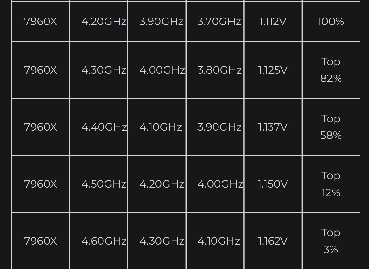Voraussetzung bei diesen Skylake-X ist Delid, danach kannst du an OC denken, 4.3 ist ja fast Stock @allCore Sync, also kaum OC…das geht auch mit 1.15V oder weniger…