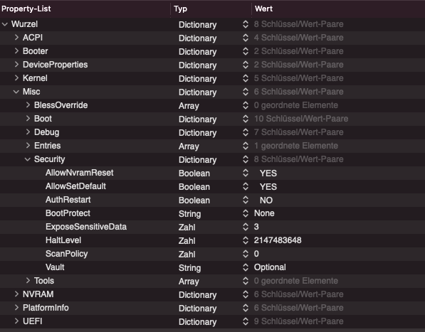 config.plist hab ich mit jetzt mit ProperTree und GenSMBIOS geupdatet