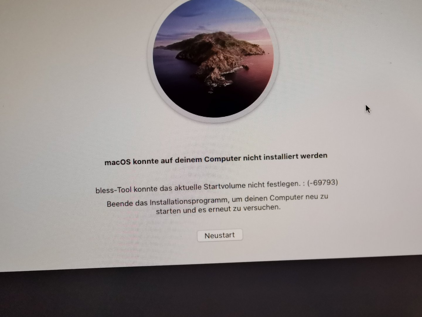 Nach erstellen eines Installationsmedium und der Neuinstallation lief Catalina, nach dem Einspielen eines Timemachine Backups der Daten meiner High Sierra Arbeitsumgebung hängt der Start ... s.u.