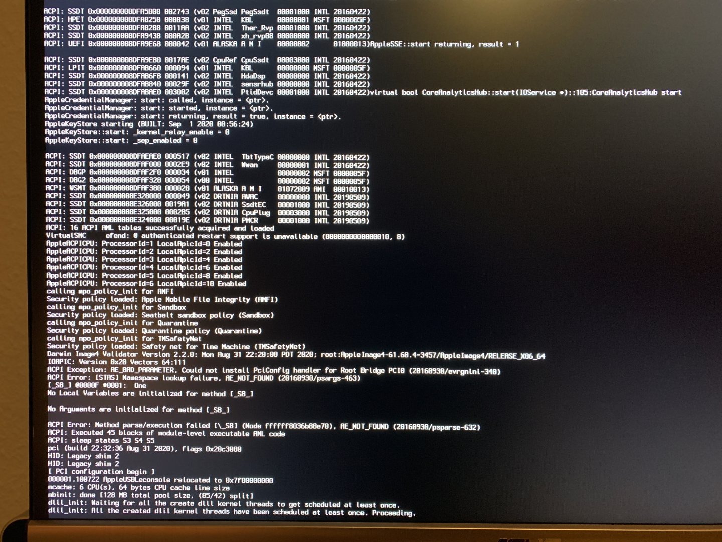 ich hab auf dem B250M in Bigsur Clover folgenden Problem. Beim Start bleibt Bigsur immer bei IOKIT_DAEMON (kernelmanagerd) Stall (0) (60s) ACPI_SMC_PlatformPlugin