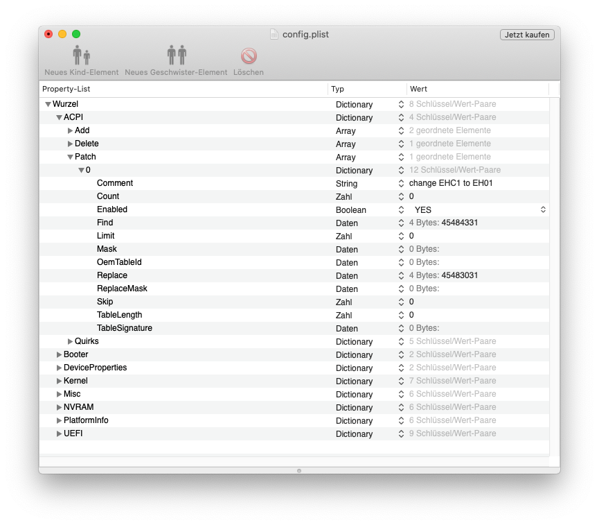 - Aktuell bin ich mit dem USB Fixing beschäftigt, jedoch schaffe ich es nicht in OpenCore meine USB Ports wie in Clover (siehe Bild) von EHC1 zu EH01 usw. umzubenennen (Ich arbeite mit => Hackintool, PLIST Editor, usw.).