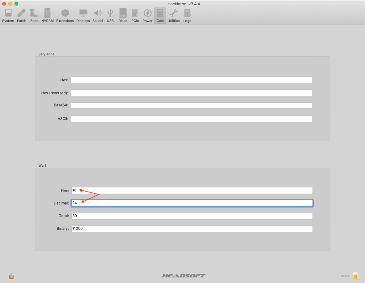Nutze den Umrechner im Hackintool.