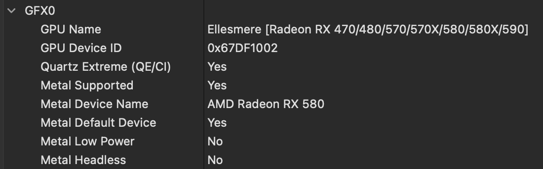 @Tadar im Hackintool die Devices bei PCIe exportieren. Die Dateien werden auf dem Desktop abgelegt. Die Datei "pcidevices.plist" mit PLISTEdit öffnen. Ebenso deine "config.plist". Die Devices in der "pcidevises.plist" in die "config.plist" an die gleiche Stelle kopieren. Den Namen auf "AMD Radeon RX 580" ändern. Abspeichern und neu starten.