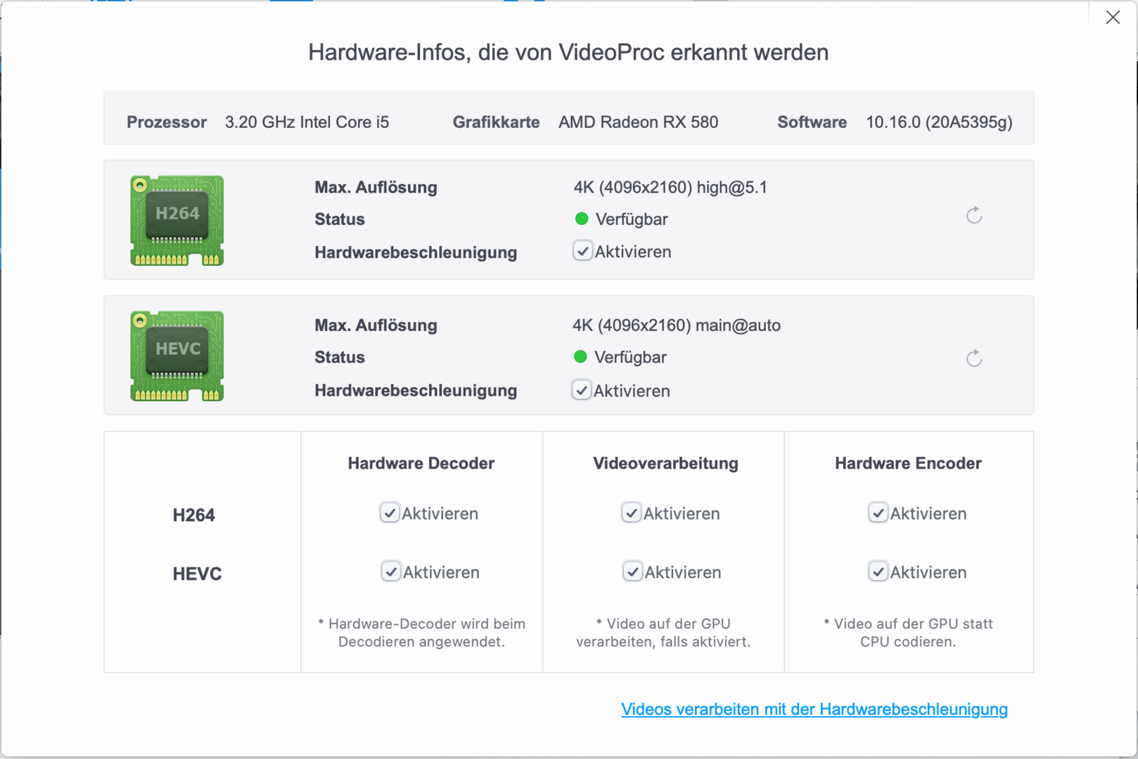 Hardwarebeschleunigung funktioniert nicht laut Videoproc