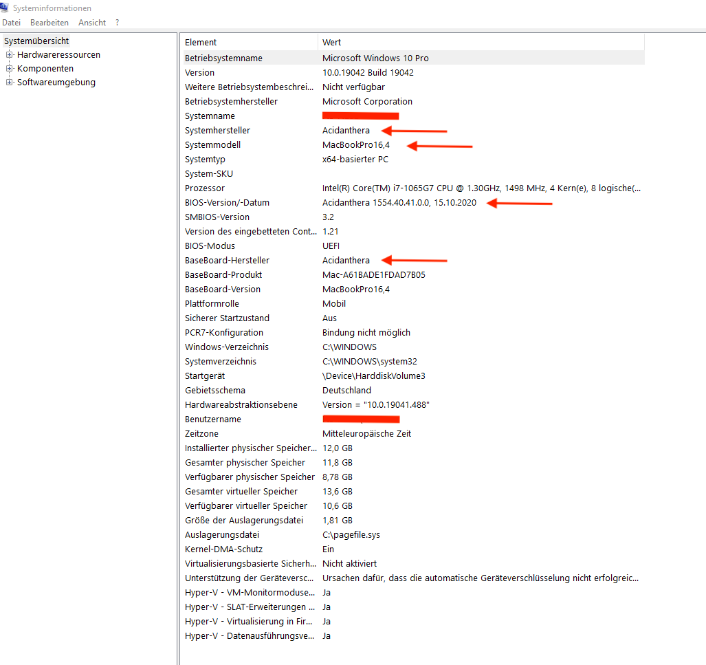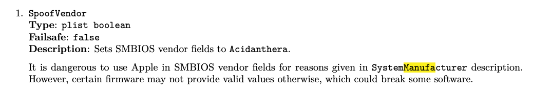 • Als Systemhersteller wird es als acidanthera definiert ja, aber kannst ja den auch anpassen wenn es anders heissen soll. Laut Handbuch soll wird es ja auch nicht empfohlen den als Apple zu definieren.