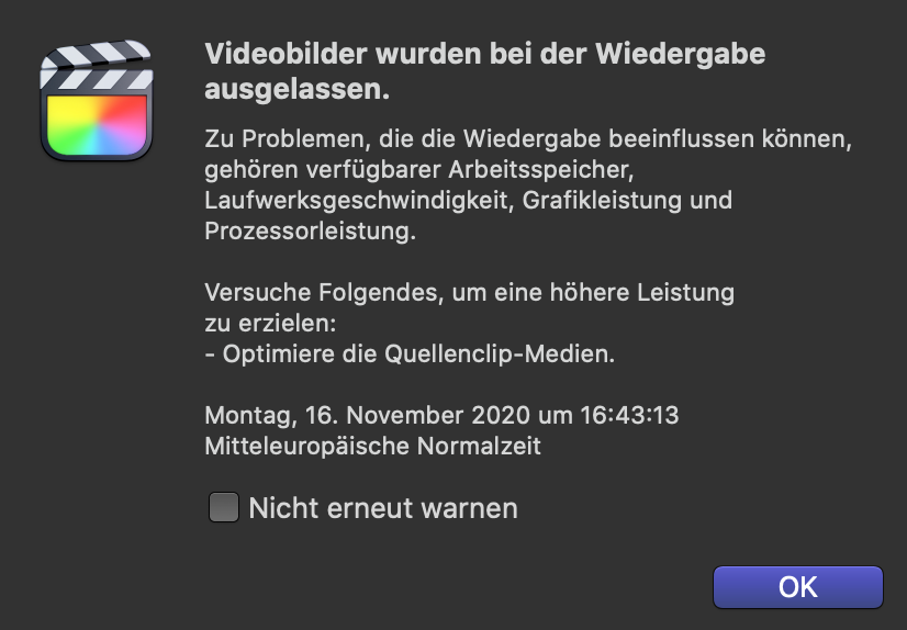 Bei schneiden von Videos mit Final Cut Pro stottert das System.