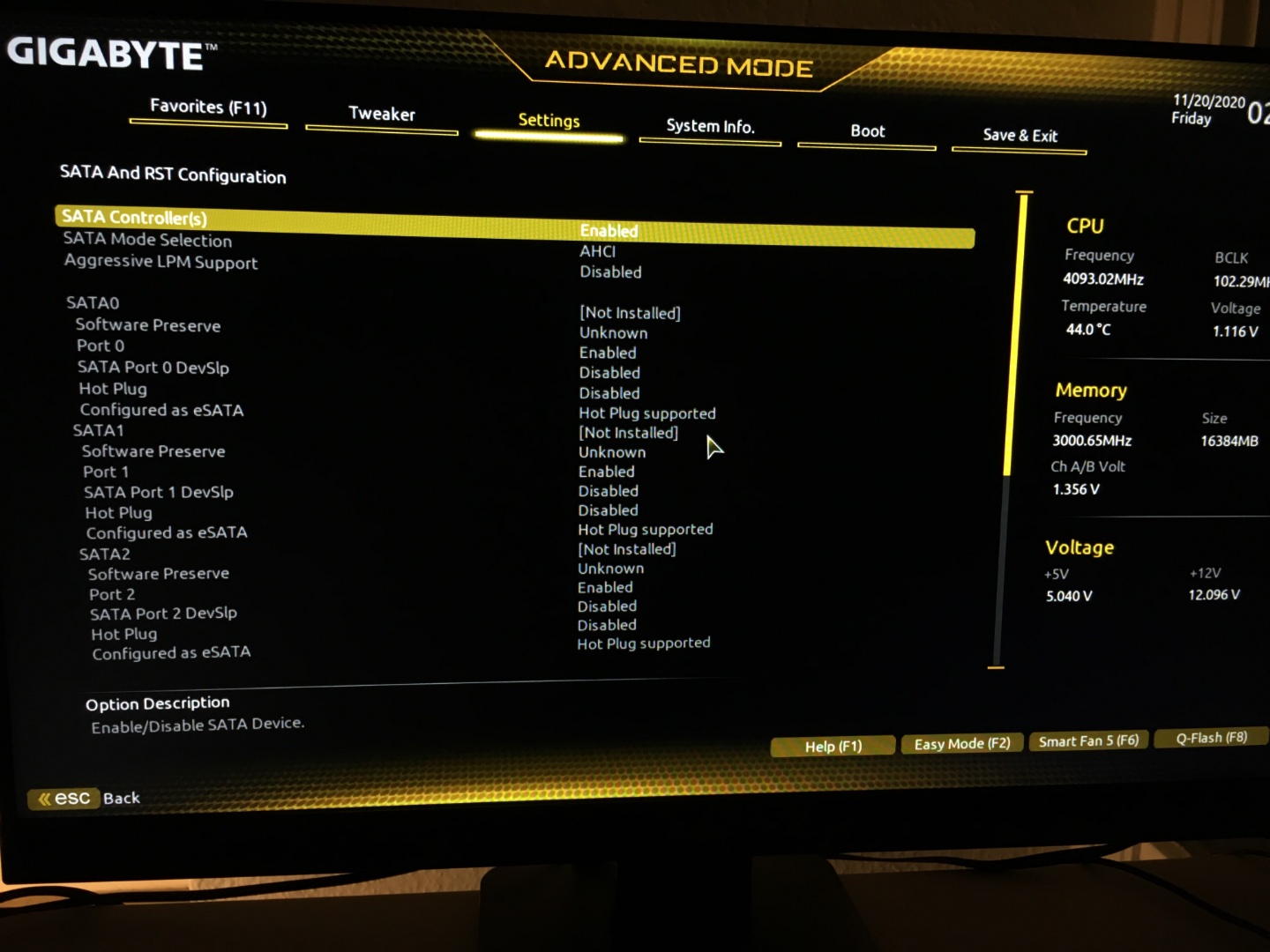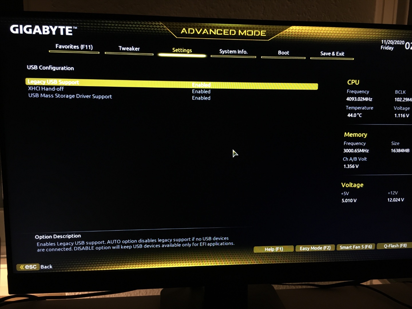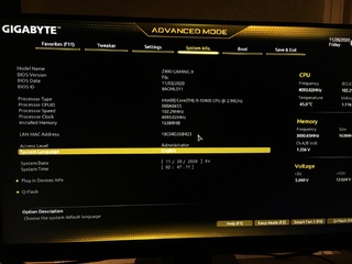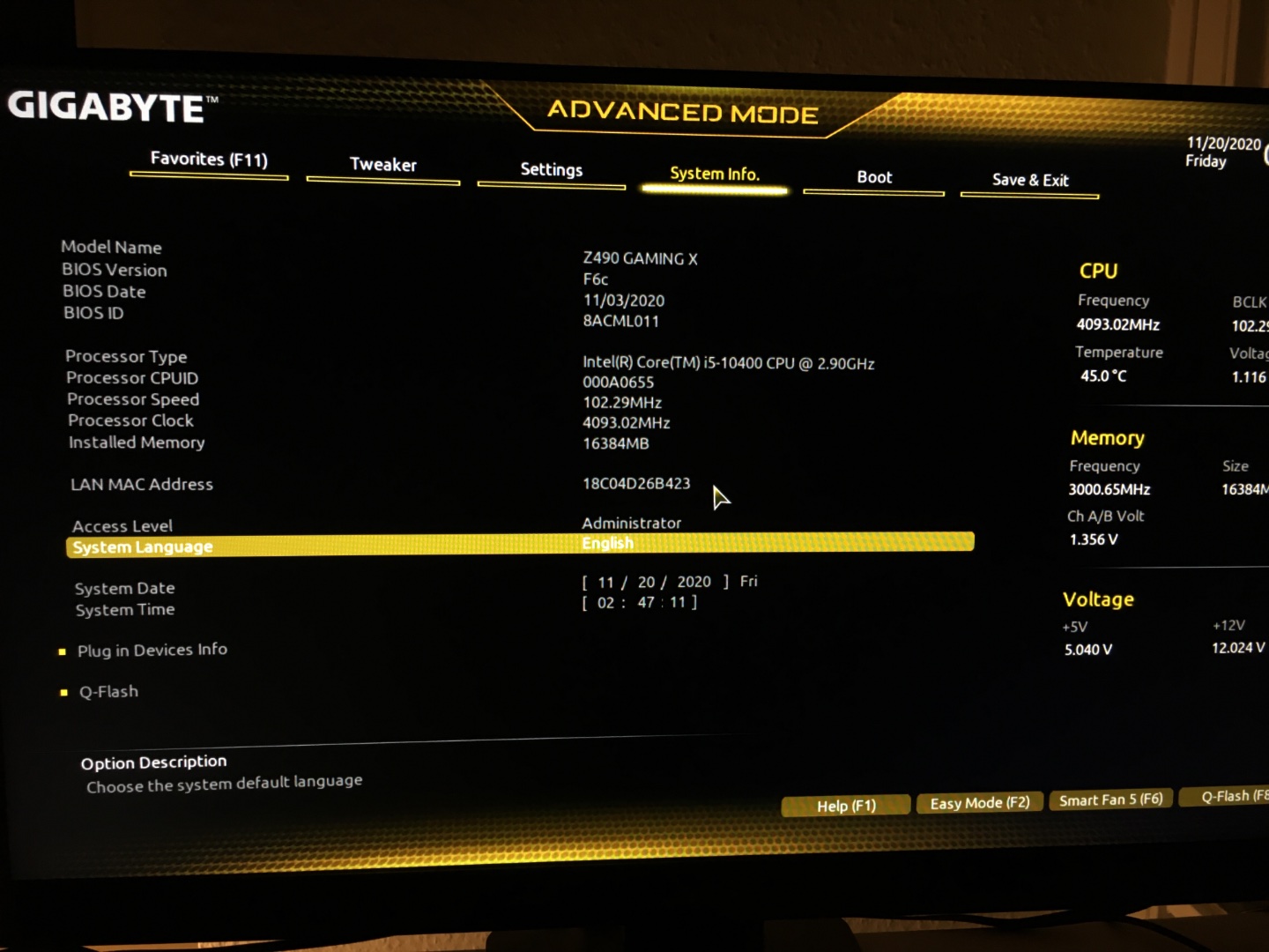 Mainboard: Gigabyte Z490 Gaming X (aktuellste Firmware)
