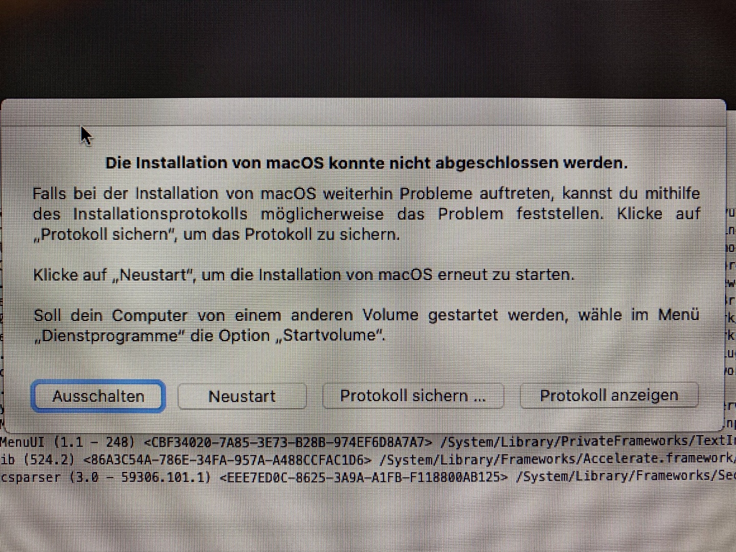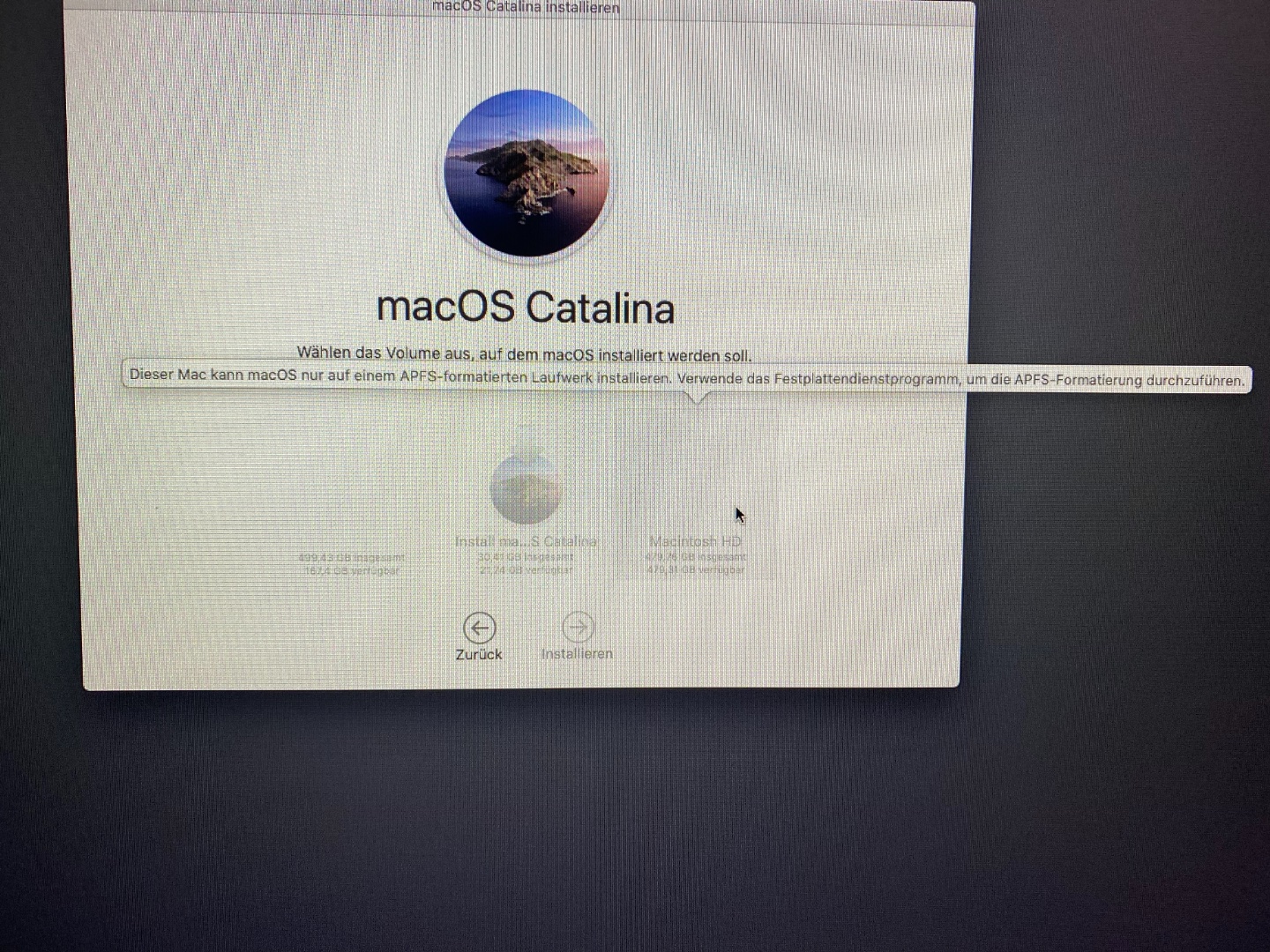 Beim Installationsprozess bin ich mir übrigens sicher, dass ich alles richtig gemacht habe. Das erste mal vom Stick Install MacOS Cataline booten, dann von Install MacOS also nicht mehr vom USB-Stick. Vor der Option auf welche Festplatte ich installieren möchte, habe ich auch die Ziel-festplatte auf APFS und GUID-Partitionstabelle umgestellt, also gelöscht und dann die Punkte ausgewählt. Zu dem Fehlercode habe ich sowohl im Forum als auch auf Google nichts gefunden.