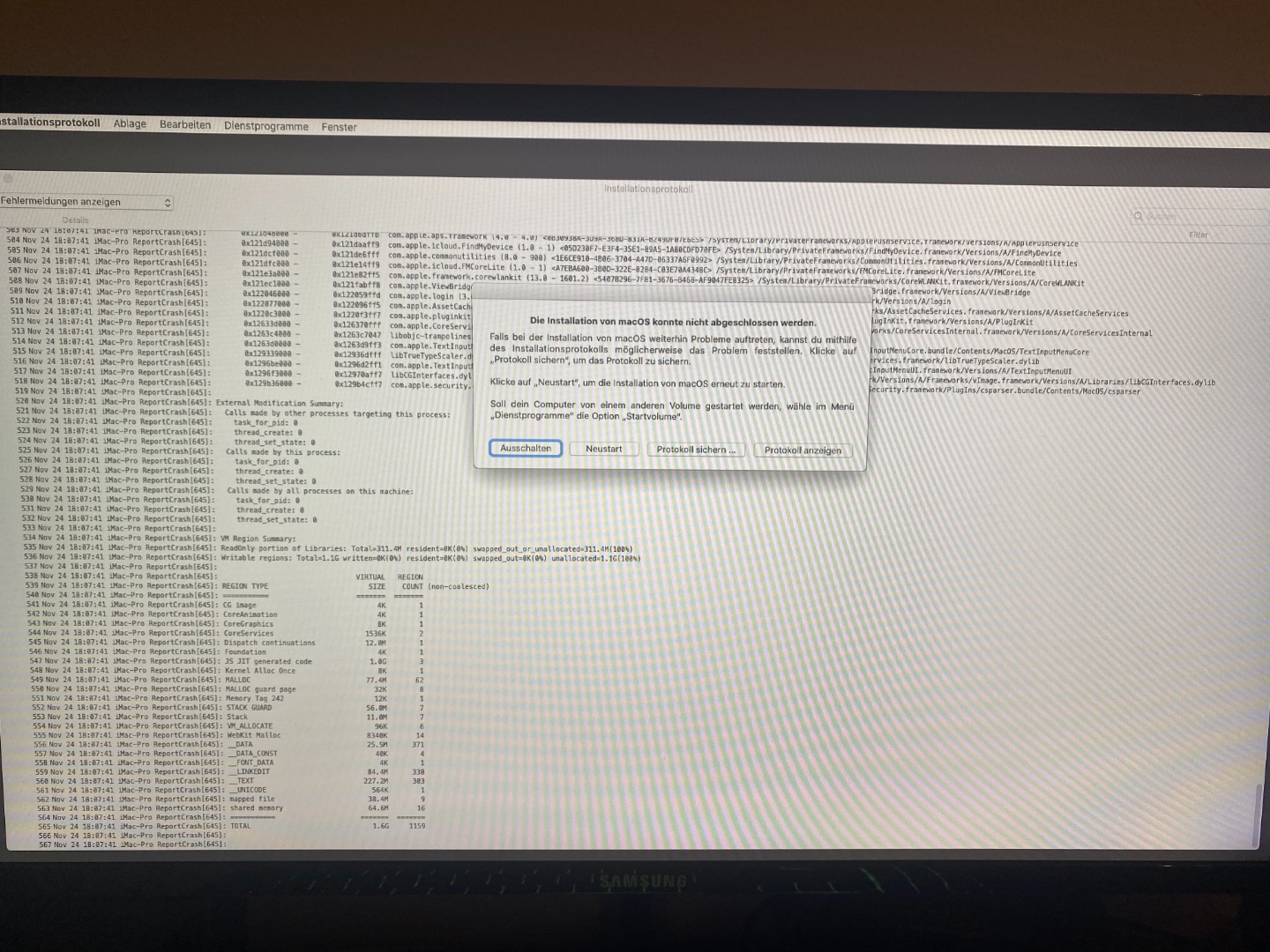 • Habe ich jetzt gemacht, aber so konnte ich gar nicht auf die Festplatte installieren (falsches Format). Hier kam jetzt aber der ReportCrash[645]. Irgendwas muss hier ganz komisch sein, wenn nach zwei Installationsversuchen Zwei ReportCrashs kommen. Glaube ich zumindest