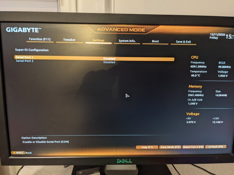 • Serielle Schnittstelle abschalten, wird häufig gesagt (auch wenn meine Hacks auch mit laufen). Die ganz neuen Boards funktionieren i.d.R. einfach so mit Standardeinstellungen, zumindest bei meinem Gigabyte H410 war das so