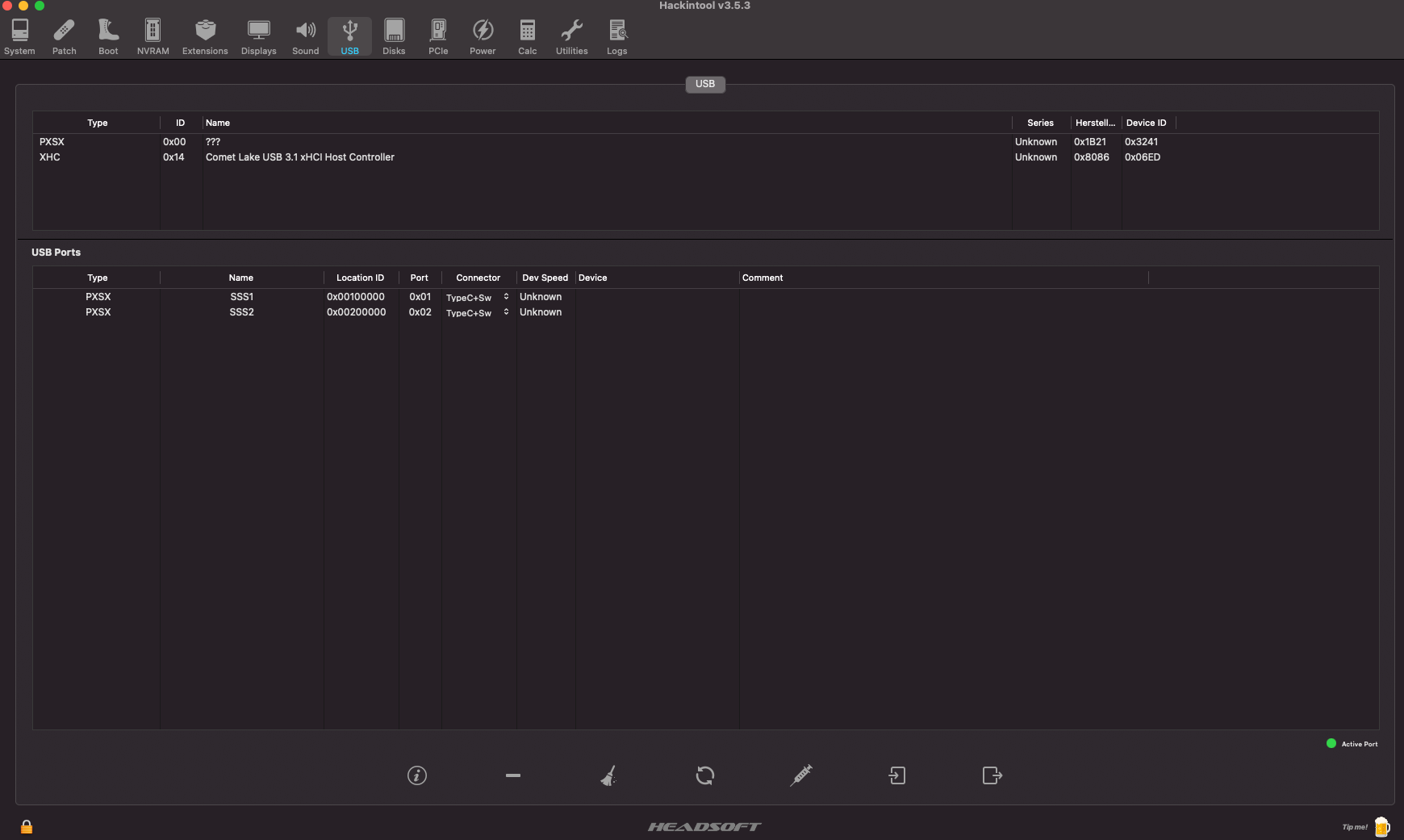 1. Hackintool = zeigt erstmal (auch nach Besen) nur 2x SS Ports an.