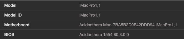 Hallo, bin kein Nutzer von Benchmarks auf der Jagd nach Punkten oder FPS. Aber ob die Grafikkarte im Hacki ihrer Funktion gerecht wird, das prüfe ich schon mal mit Geekbench. Neulich wurde ich stutzig: Das Tool meldet bei Auskünften über das System, welches ja ein (i)Mac-irgendwas sein sollte, dass es ein acidanthera-System ist.