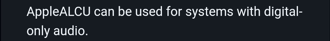AppleALCU can be used for systems with digital-only audio. Sagt ja eigentlich alles oder?