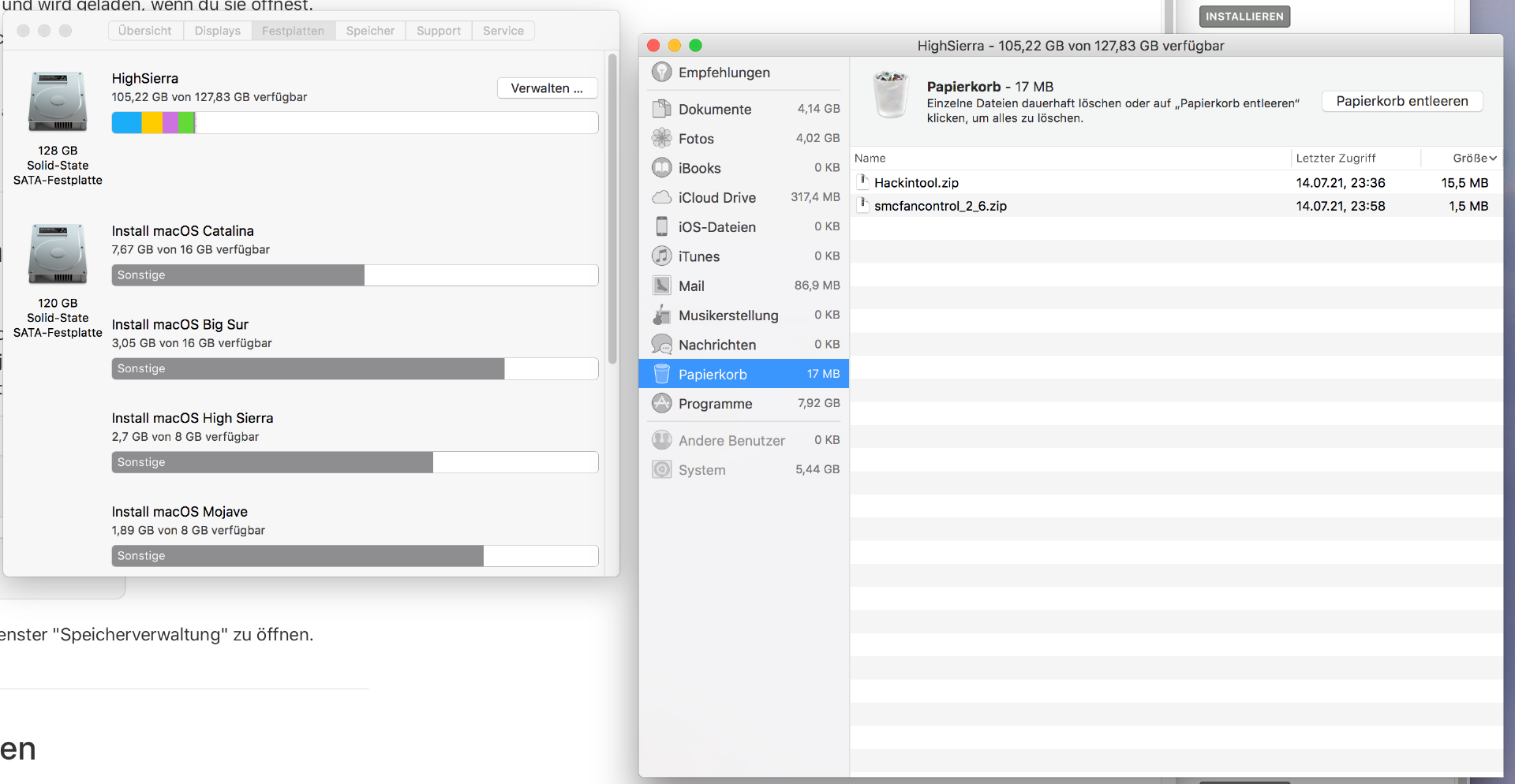 Ich hab da eine kleine Frage. Wenn ich die Informationen meiner Festplatte anzeigen lassen, steht da bei 'Verfügbar' 41,72GB löschbar. Wie kann ich das denn löschen oder was für Dateien werden da als löschbar markiert?