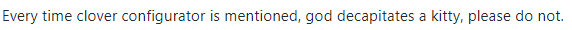 Lange Rede kurzer Sinn jeder nach seinem Gusto und idealerweise passend zum erwünschten/zu erreichenden Ziel und schon sind alle glücklich. Was ich mir mehr wünschen würde als solche Diskussionen wäre das wir alle viel aufmerksamer die wirklichen Fragestellungen der einzelnen User lesen und erfassen (auch zwischen den Zeilen). Die ursprüngliche Frage, aus der diese Diskussion hier losgetreten wurde, war nämlich mit Nichten "Ist Open Core oder Clover besser?" sondern die ursprüngliche Frage war (zugegeben ein wenig ungelenk gestellt) "Worauf muss ich eigentlich achten wenn ich einen Laptop kaufen möchte der maximal kompatibel mit macOS ist?". Bezogen auf die eigentliche Frage des TE hat diese gesamte Diskussion für den TE genau null Informationsgehalt. Wenn man jetzt noch davon ausgeht das sich der User gerade erst registriert hatte kann man sich an fünf Fingern abzählen wie oft der nach dem Thread hier noch aufschlagen wird...