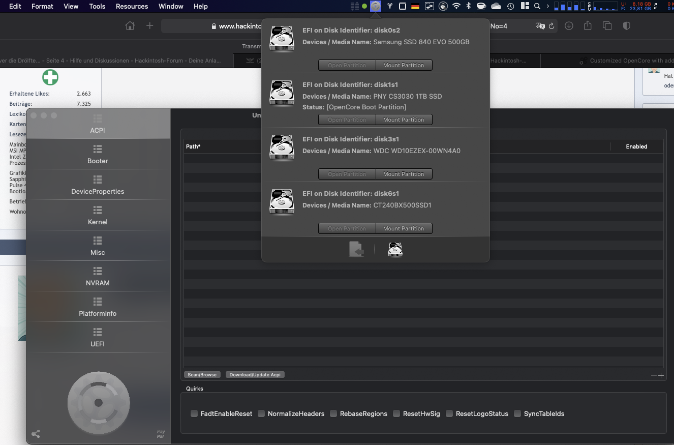Ein kleiner Patch in Opencore womit die ACPI Patches wie in Clover nicht angewendet werden wäre ja nicht viel verlangt gewesen. Es ging ja mit einem Opencore Mod wunderbar.