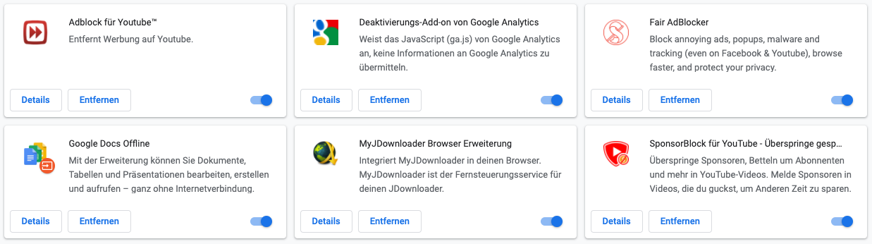 • Ich nutze den Chrome Browser mit diesen Erweiterungen: