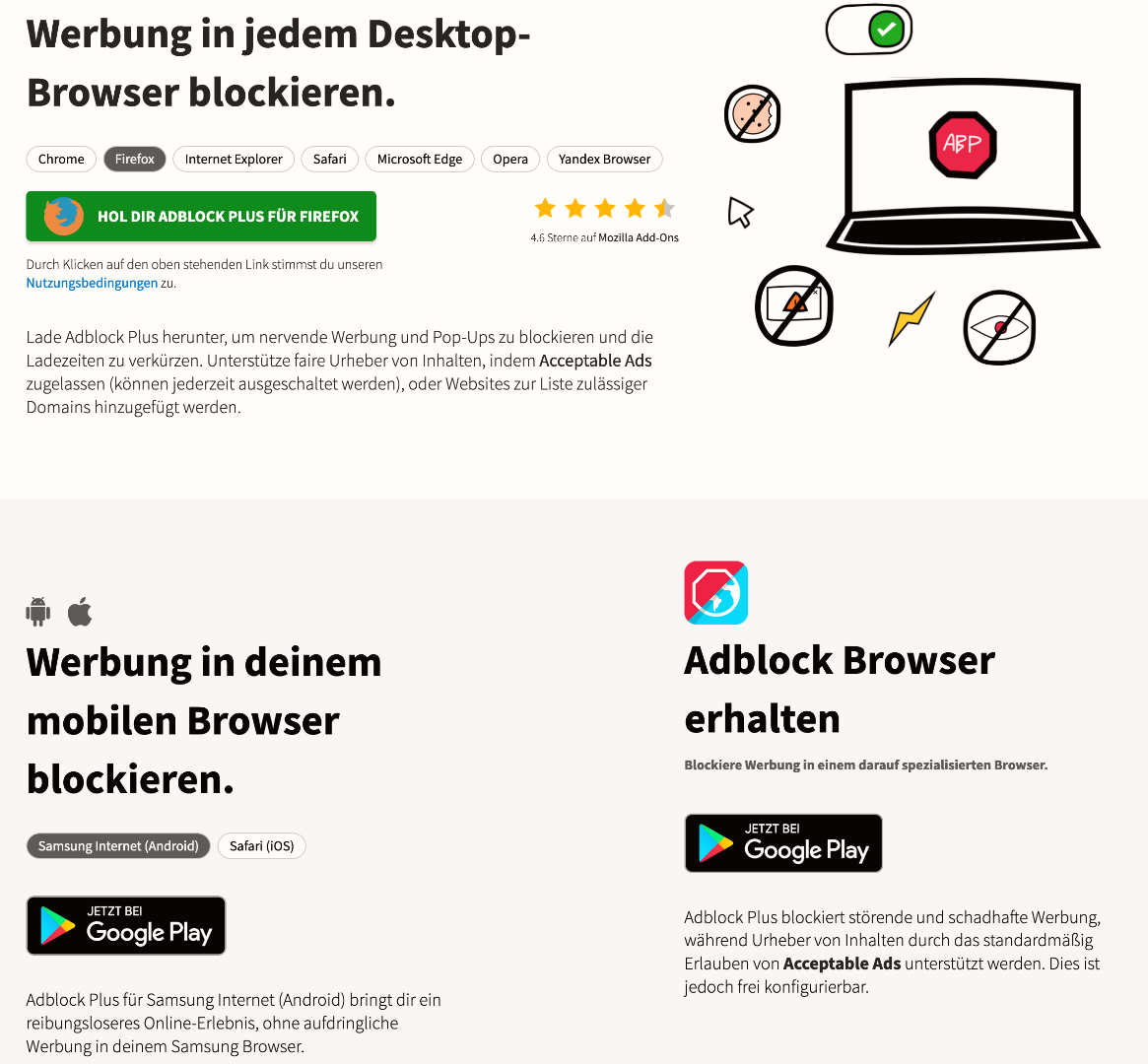 "Adblock Plus" läuft auf jedem Gerät (Android/iPhone) und jedem Browser s.u.