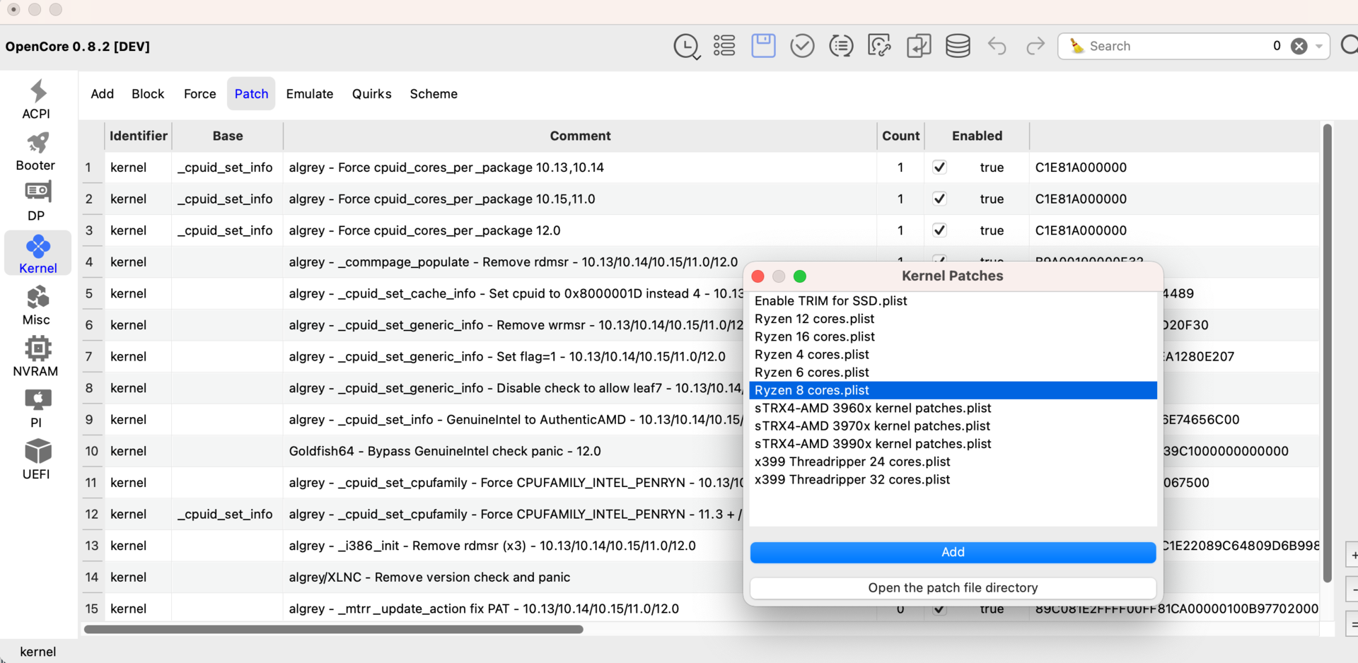 • without leaf7 patch Ventura cannot start (on AMD CPU)