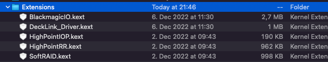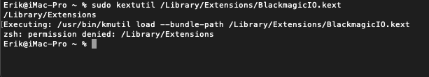 Im Tomatenforum gab es den Tipp, SIP auf 67080000 zu setzen und nach der Installtion (aber vor dem Neustart) sudo mv /Library/Application\ Support/Blackmagic\ Design/Blackmagic\ DeckLink/Signed\ Extensions/BlackmagicIO.kext /Library/Extensions auszuführen. Aber auch das hat bei mir nicht geholfen. Habt ihr eine Idee, wie ich die Kexte geladen bekomme?