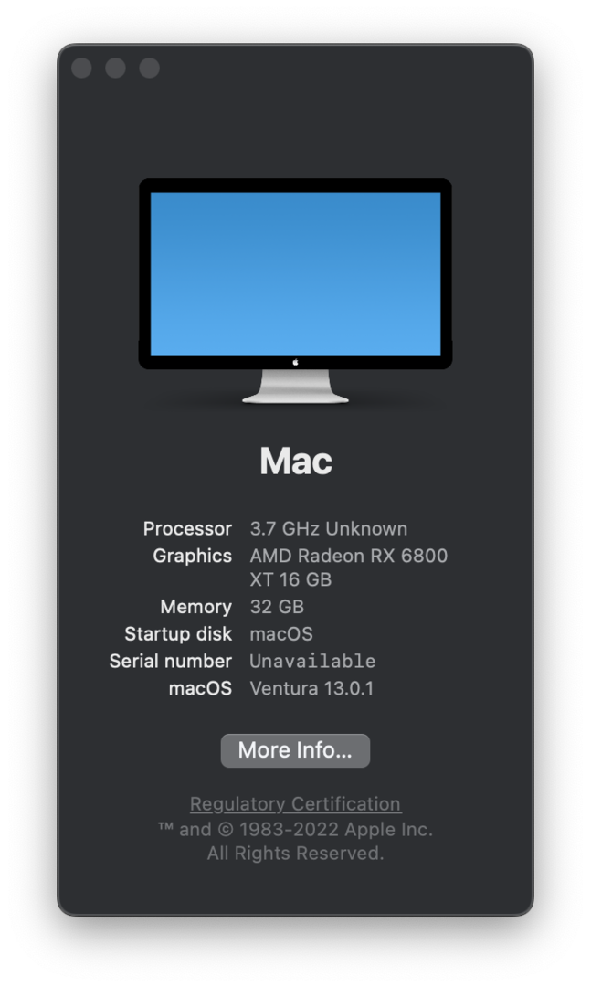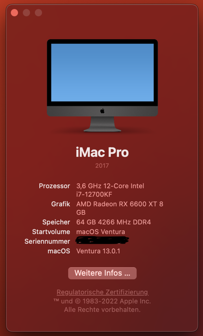 Ich habe meinen Hackintosh auf Ventura geupdated, und nach einigen Problemen mit LAN und WLAN (musste meinen LAN chip mit einem custom BIOS flashen) funktioniert nun alles wieder soweit.