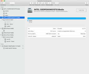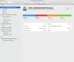 Zusätzlich habe ich das Festplattendienstprogamm aufgerufen und von allen Einträgen Screenshots gemacht, die im Ordner Festplattendienstprogramm_screenshots zu sehen sind.