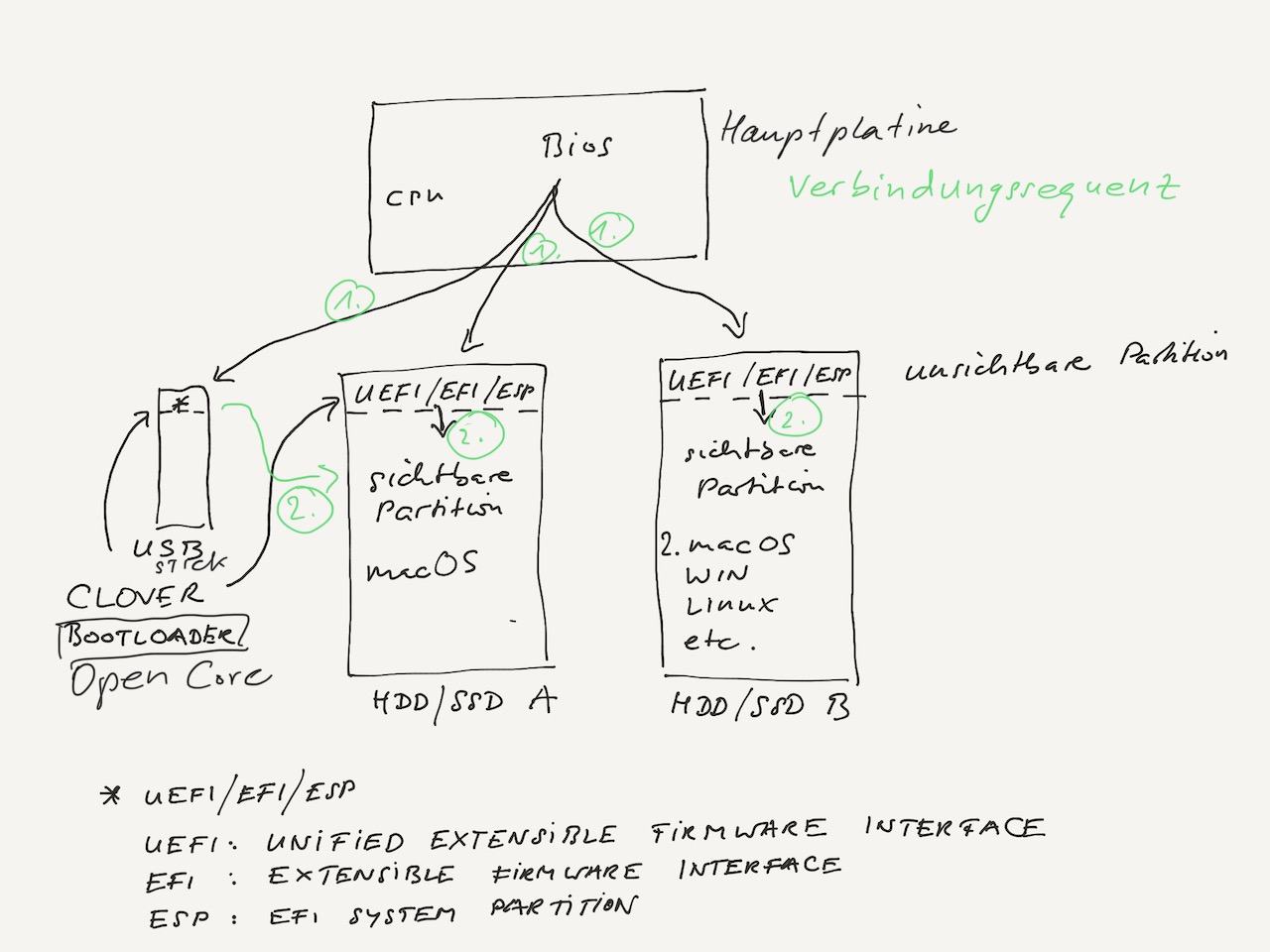 - EFI-Partition dieses Sticks mounten und darin den EFI-Ordner mit den Inhalten gemäß Anleitung befüllen.