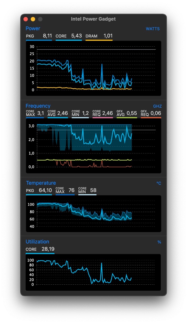 Das Lüftergeräusch ist jetzt, unter Ventura, deutlich lauter als es war, als ich auf derselben Hardware Catalina laufen hatte. Das Geräusch ist nicht wirklich störend, aber doch deutlich zu hören. Unter Catalina war mein Rechner praktisch lautlos (außer ich habe die CPU stark beansprucht), und diesen Zustand hoffe ich auch unter Ventura zu erreichen.