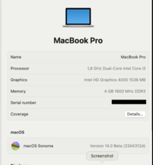 Danke für die Anleitung aus Post #603 , ich habe diese Geschichte wohl bislang verpennt, hatte auf dem T450s für Ventura auf 14,1 und für Sonoma auf 15,2 angehoben, nebst USBPort.kext-Anpassung.