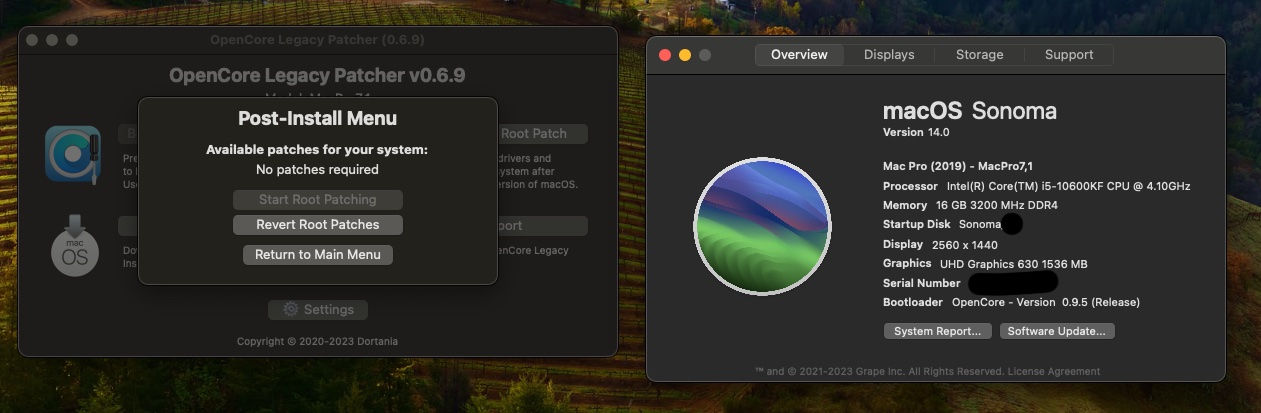 Once these are injected, you can run OpenCore-Patcher's Post-Install option and root patch. On reboot, Wireless support should be restored assuming your machine was configured correctly to the above.