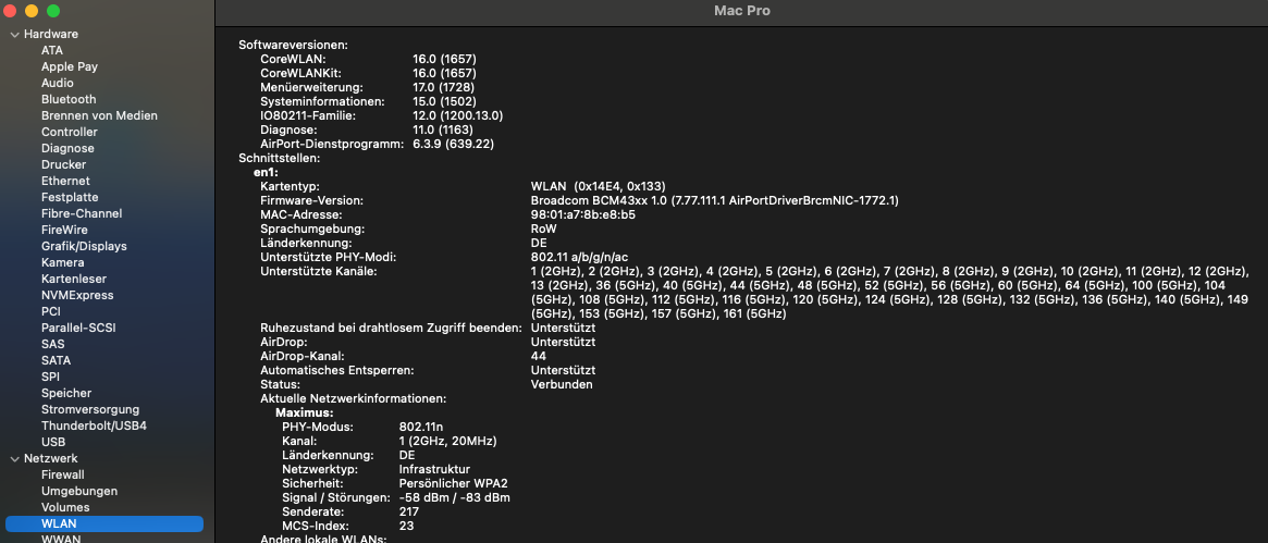 • Seid Euch bitte aber darüber im Klaren das so Dinge wie Airdrop und Co. mit den Intel Karten oder externen Lösungen nicht funktionieren...