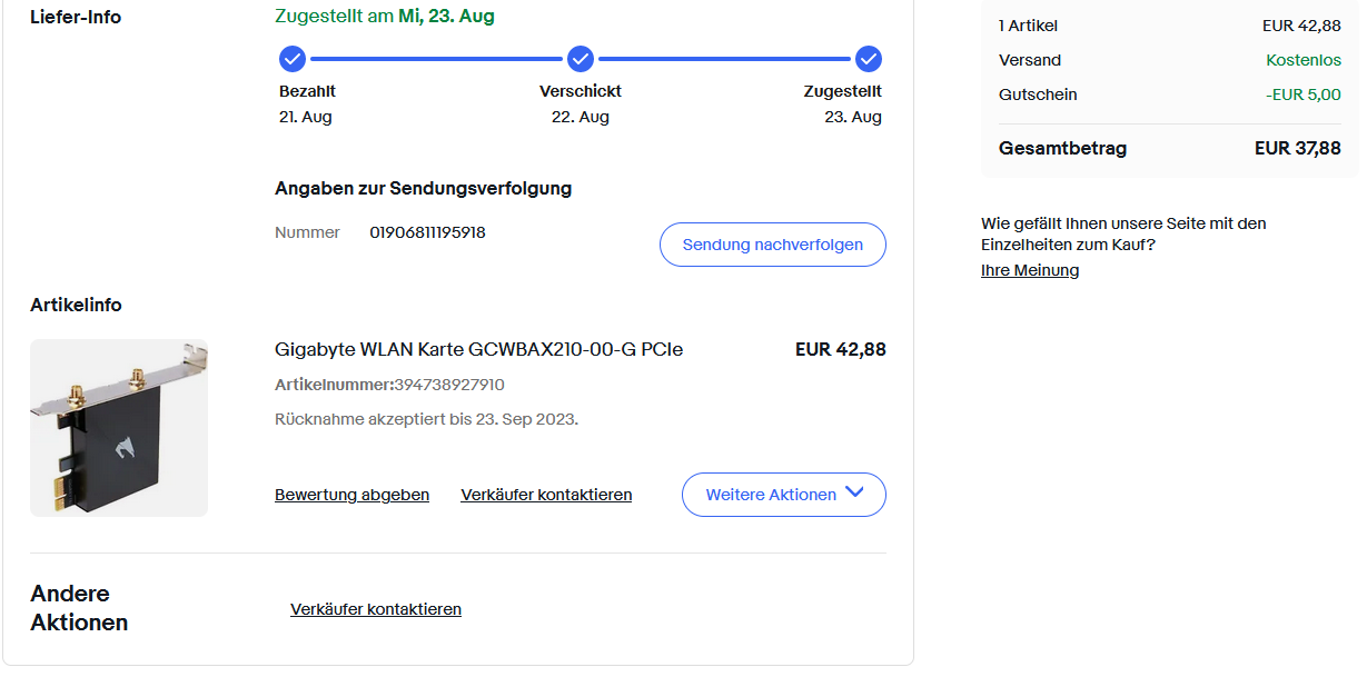 Der Moment, wenn die nackten WLAN-Module günstig sind (AX210 für 18 Euro auf Amazon), aber mit gescheiten Antennen und Adaptern der Preis einfach mal in die Höhe schießt.