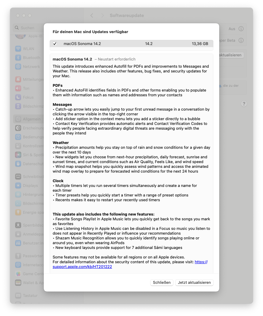 • Und auf in die nächste Runde: die Release-Version von macOS Sonoma 14.2 ist da.