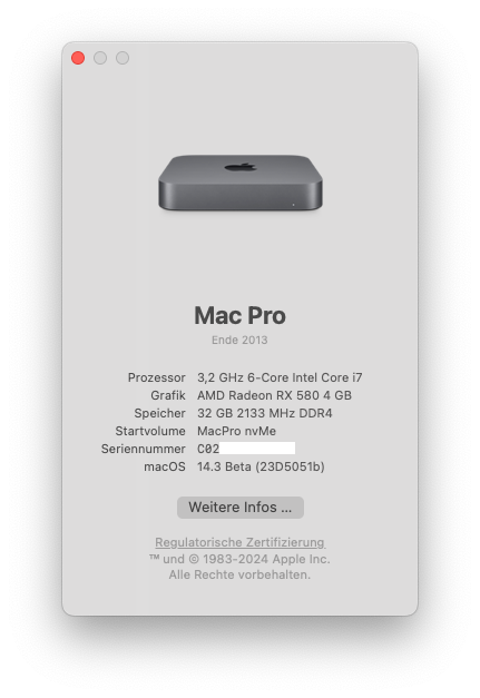 Was mich insgesamt an Sonoma stört, ist das seit Blender 4.0 die GPU Renderzeiten sehr langsam sind. Mit Ventura gibts dieses Problem nicht.
