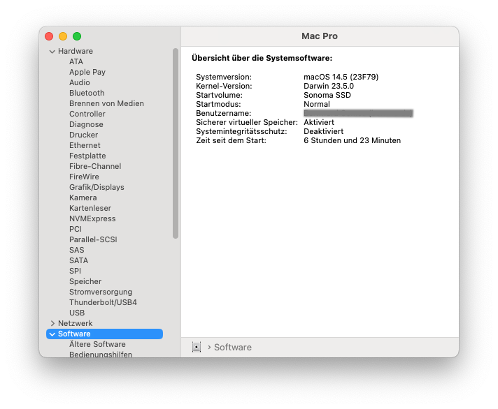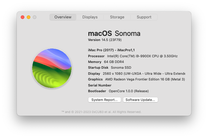 Jetzt läuft er wieder mit Sonoma 14.5 (23F79) auf der alten EFI als iMacPro und dem Broadcom-WLAN, bisher den ganzen Arbeitstag ohne Abstürze. Bin ich bei Sonoma ja hier nicht mehr gewohnt.